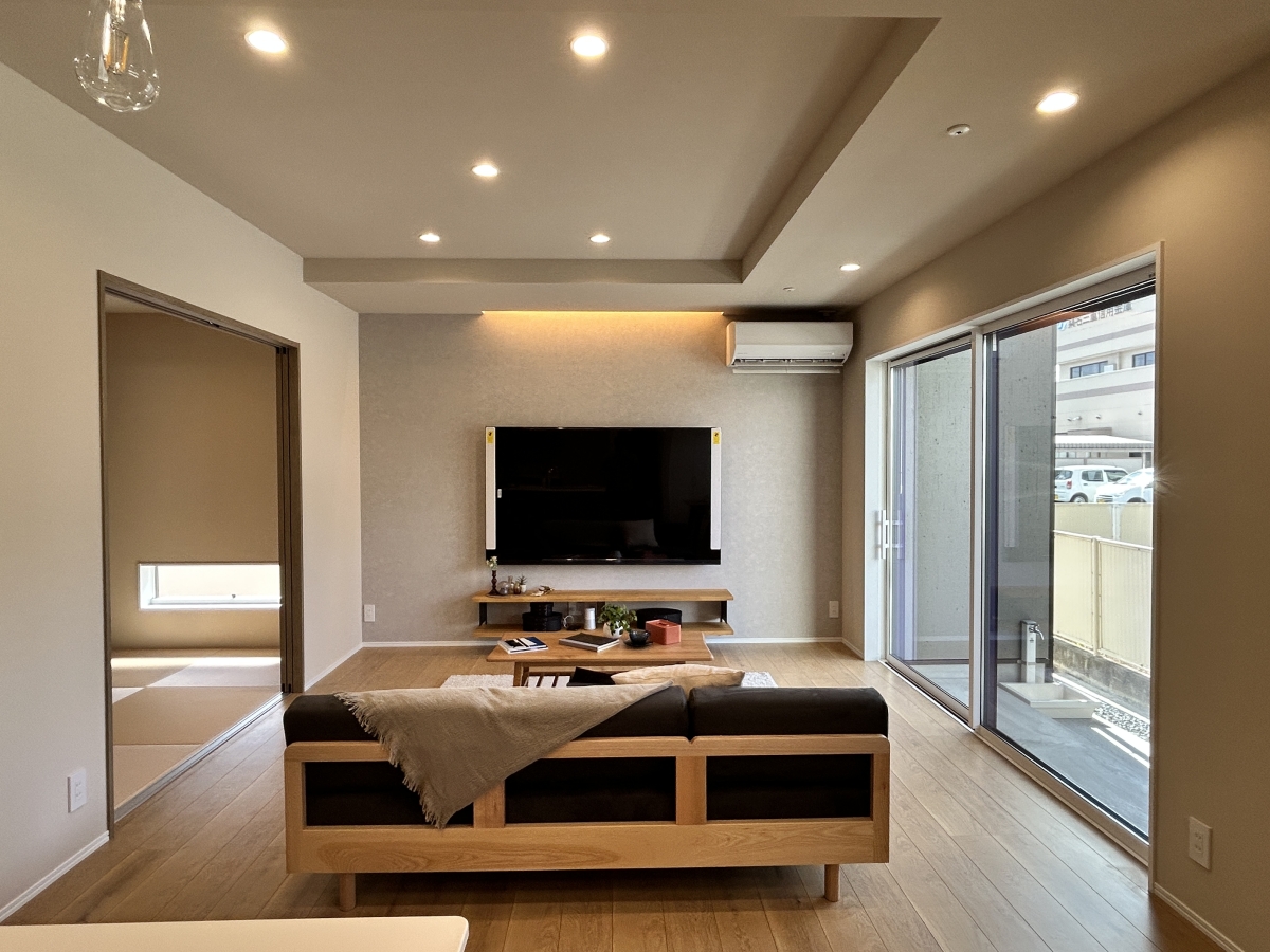 今回のお家のテーマは『家事楽な家』。奥様がこだわり抜いたお部屋や収納や内装から動線まで、設計段階から密な打ち合わせを重ね、工事中もスタッフのインテリアコーディネーターと一緒に細部にわたり打ち合わせを重ねました。