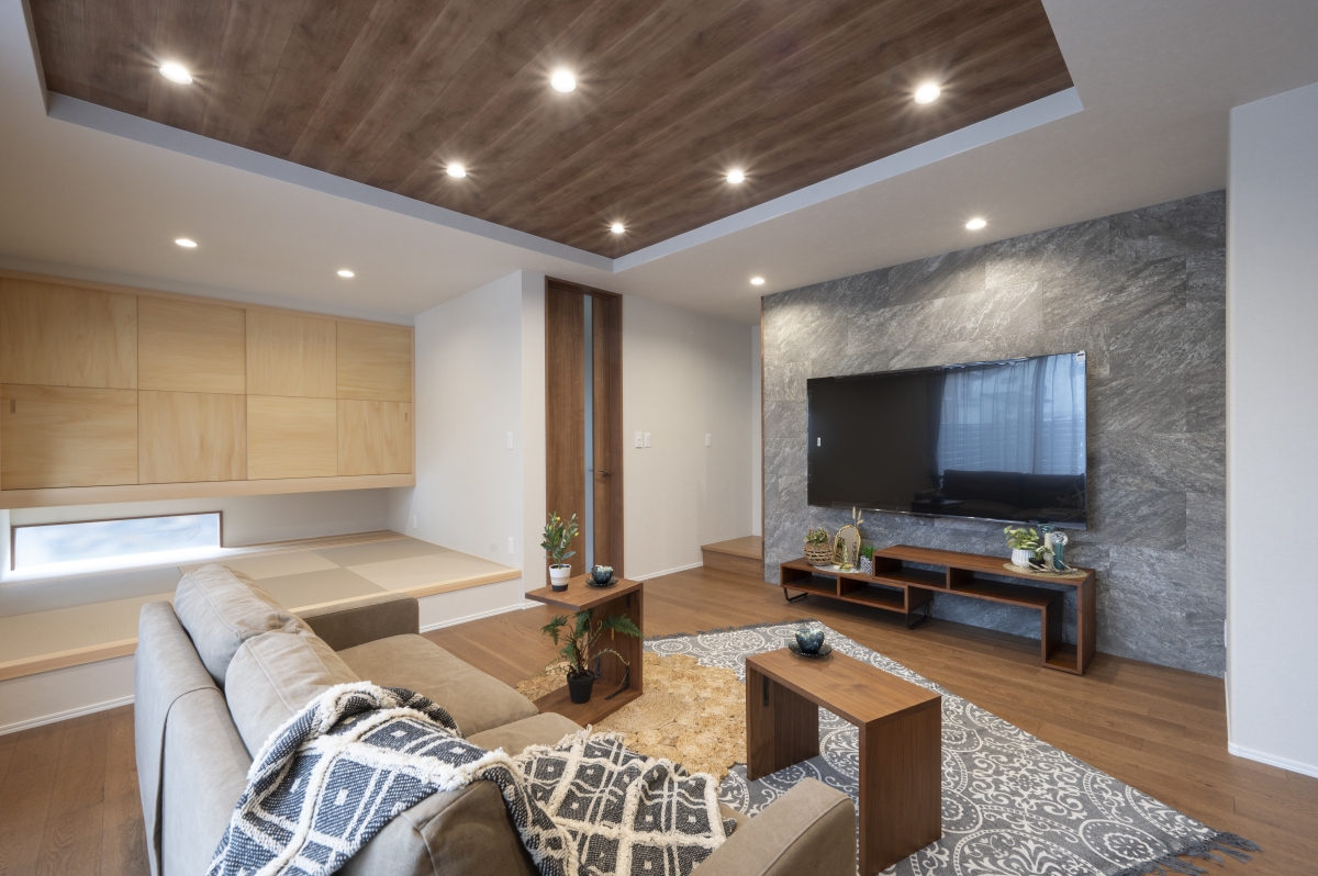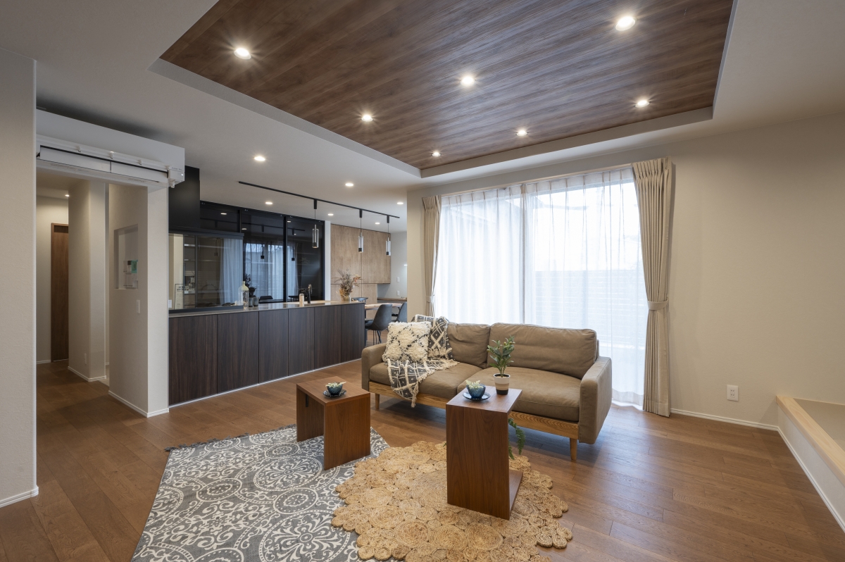 光と風が心地よく巡る、開放感あふれるリビング。家族が自然と集まり、笑顔が広がる場所に。